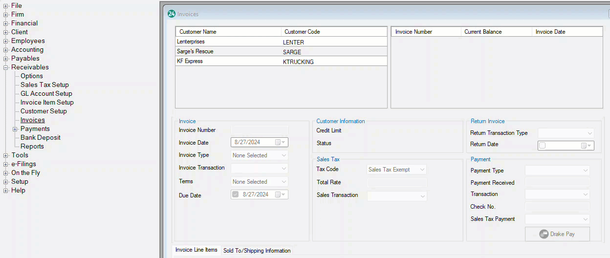 Receivables > Payments > Drake Pay