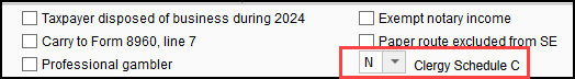 If the Schedule C is not for a member of the clergy, use the drop list Clergy Schedule C and change the selection to No.